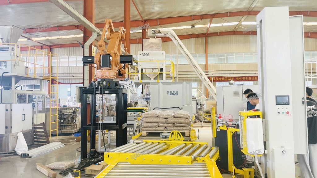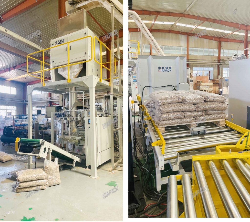 Esti aici: Acasă » Știri » 15KG Pelete de lemn Cântărire umplere ambalare Linia de paletizare este gata de livrare