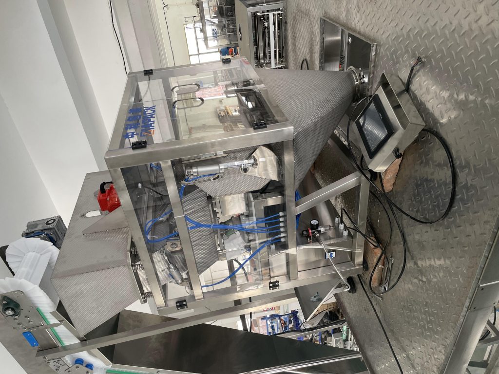 Această unitate de mașină are un design special pentru ambalarea cuburilor de gheață și a tubului de gheață într-o pungă de plastic moale. Cu funcția de alimentare cub de gheață, cântărire, umplere, etanșare automată a formării sacului și ieșire a sacului plin. Mașina principală are funcția de numărare a sacului și codare a datei .