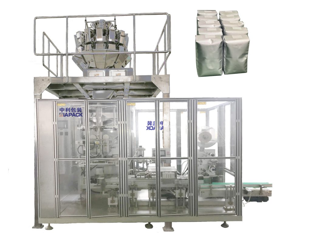 Întreaga linie, inclusiv un set de mașină de etanșare pentru formarea sacilor vffs, o mașină de ambalare a pungii cu autocolante, un set de verificare a greutății și mașină de transport tampon și un set de mașină de ambalat film termocontractabil. și deformare. Există o funcție suplimentară opțională pentru aspirarea sacului care poate fi adăugată pe această mașină.