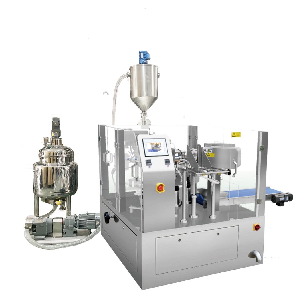 Echipat cu dispozitiv de dozare a pistoanelor, este utilizat pe scară largă pentru a împacheta lichide și pastă, cum ar fi detergent, balsam, sampon, gel de duș, lapte, apă, suc, sos de soia, ulei, ketchup, maioneză și așa mai departe.