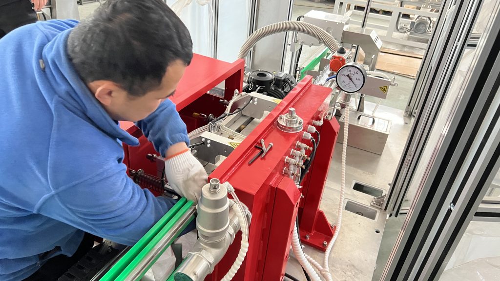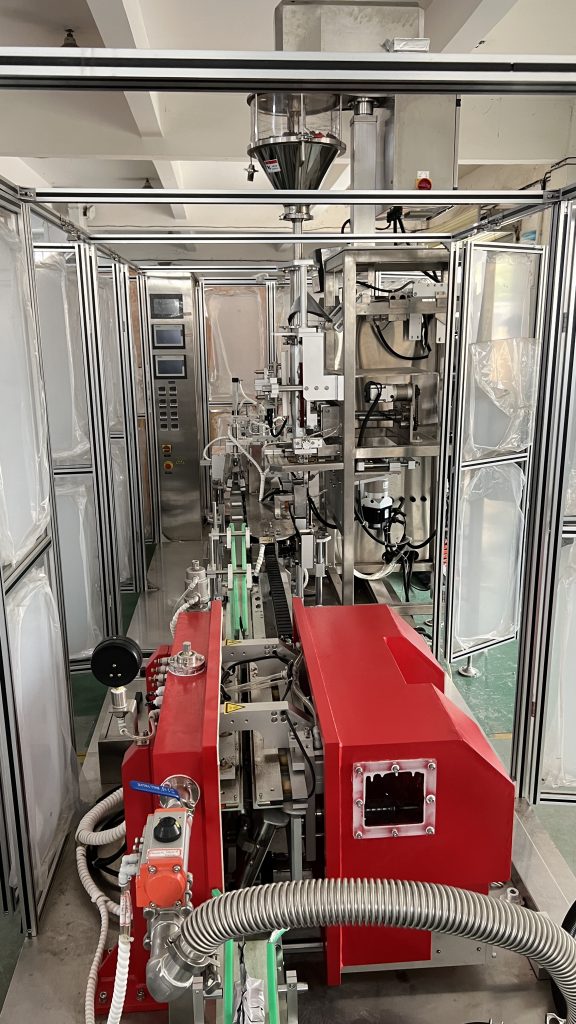 Clientul nostru din Iran a comandat un set automat de pungi de cărămidă pentru formarea unei mașini de ambalare de umplere pentru praf de cafea de 250 de grame. Și urmați cerința clientului, am vopsit camera de vid pentru a avea culoarea roșie ca avertisment.