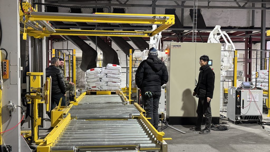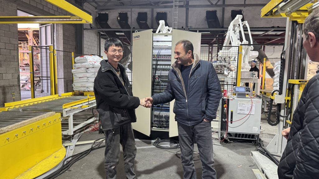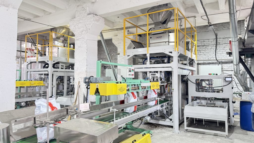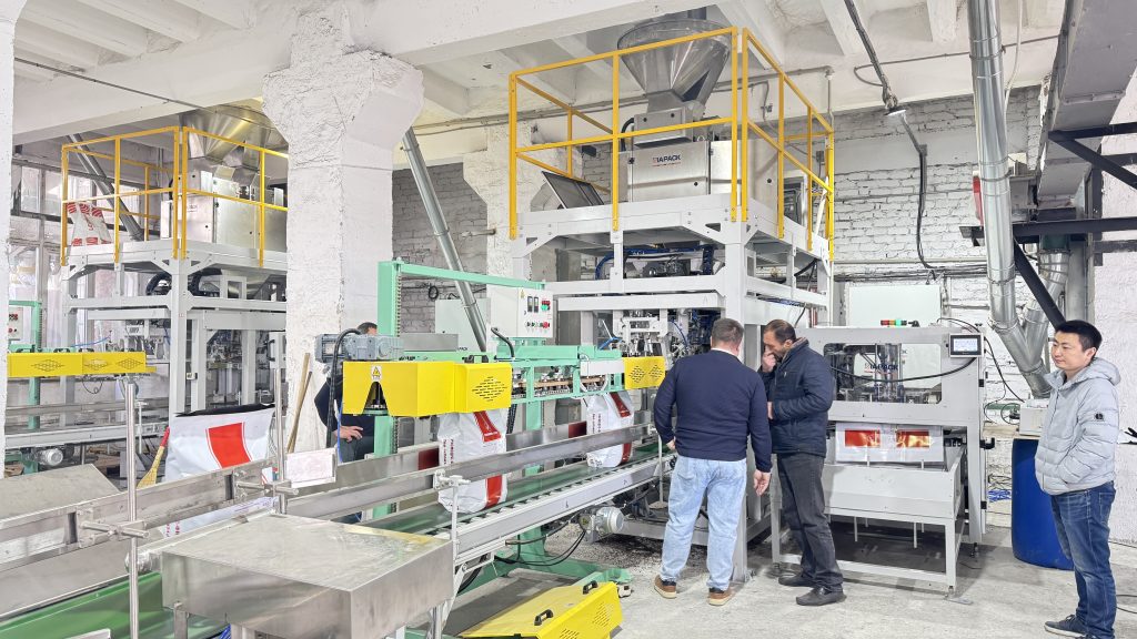Esti aici: Acasă » Știri » Two units 25kg pet food automatic weighing bagging conveying and palletizing line start running in our client factory