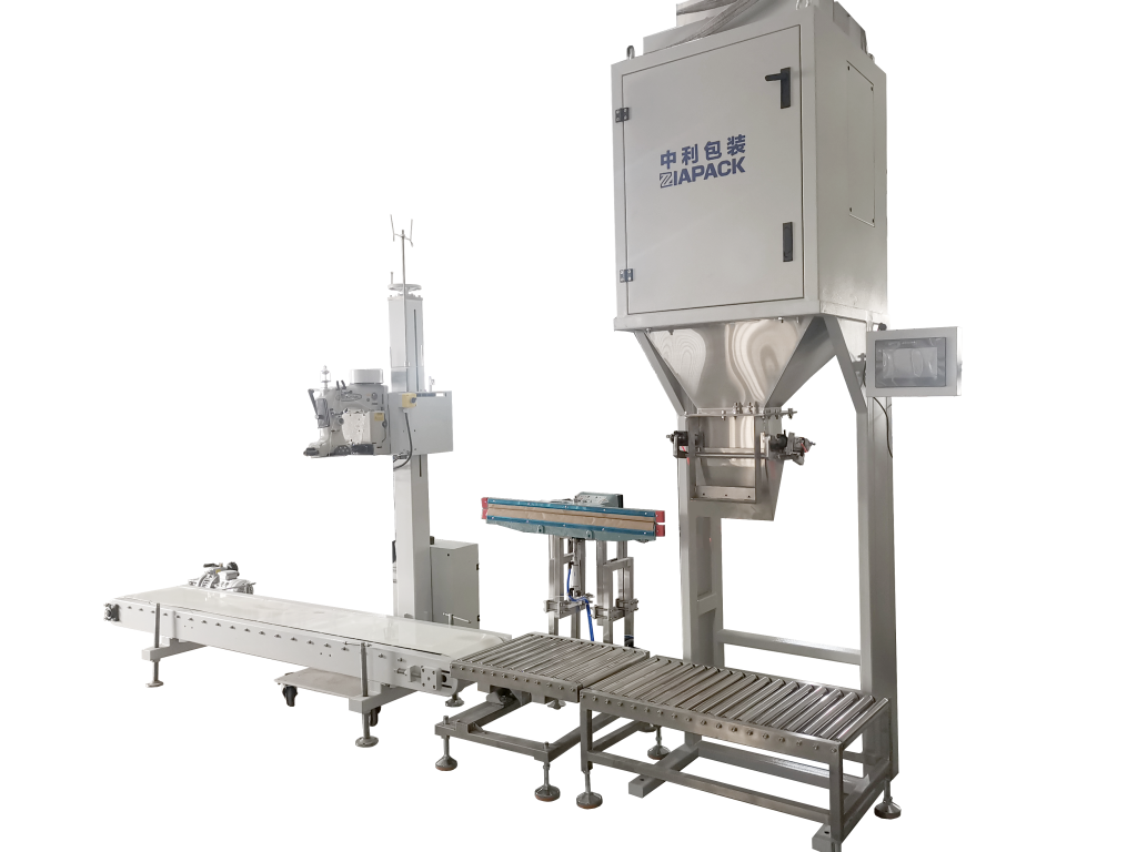 Introducerea manuală a sacilor → umplere automată → cântărire automată → transport automat de pungi → coaserea / sigilarea automată a sacilor prin asistare manuală.