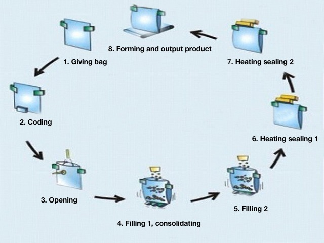 Mașina de umplere și sigilare prefabricată, compusă din 8 stații de lucru eficiente și stabile, pune accentul pe pachetul de pungi de siguranță, sacul cu fermoar, sacul de gură și diferite pungi pre-făcute. Colaborat cu diferite sisteme de dozare (cantarire / cantarire liniara / surubelar / plin cu piston) si transportoare automate de ridicare, se aplica pe scara larga granulelor, lichidului si pulberii.